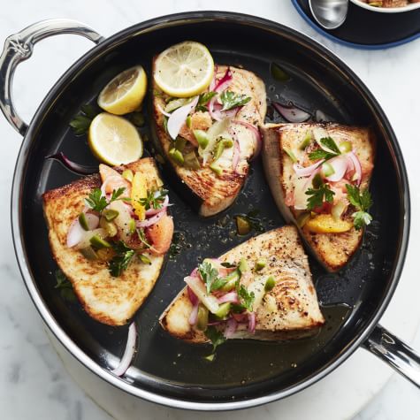 • Pan-Seared Swordfish with Olive-Citrus Relish