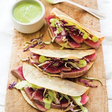 • Tuna Tacos with Avocado and Wasabi Crema