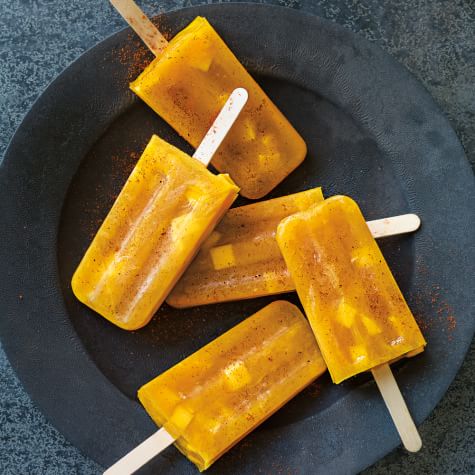 Paletas (ice pops) are made fresh daily at small paleterias across Mexico. The frozen treats are often wild combinations of savory and sweet, spicy and herbal, incorporating both fruits and vegetables. These simple-to-make pops balance sweet mango with an interesting edge of mild chile. If fresh mango isn’t available, substitute papaya, passion fruit or even blackberries and their juices in these ice pops.