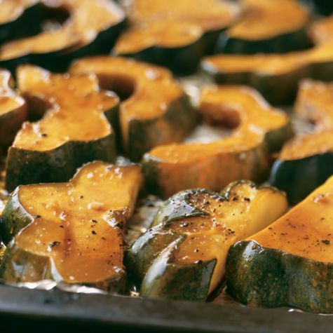 The sweetness of maple syrup, the saltiness of soy and the subtle heat of ginger come together in a perfectly balanced glaze for thick slices of acorn squash. Other varieties, such as butternut and banana, can be prepared the same way. Winter squashes with firm orange flesh are great sources of beta-carotene. Serve this cool-weather dish with roasted meat or poultry.