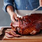 Transfer the ham to a carving board and let rest for 10 to 15 minutes. Cut the ham into slices and arrange on a warmed platter. Serves 14 to 18.