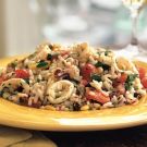 Add the rice to the squid mixture along with the currants, pine nuts, tomatoes and mint. Toss to distribute the ingredients evenly, then taste and adjust the seasonings with salt and pepper. Serve immediately, or cover tightly and refrigerate for up to 1 day, then bring to room temperature before serving. Serves 4 to 6.