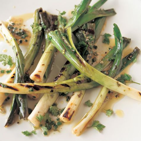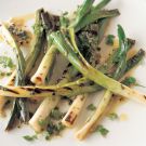 About 15 minutes before you plan to serve the leeks, prepare a medium-hot fire in a grill.