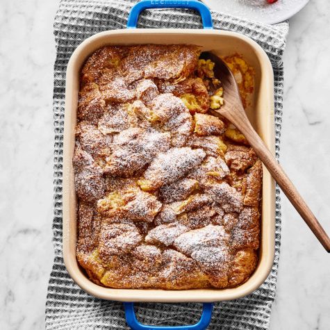 Bake until the pudding is golden and a knife inserted into the center comes out clean, 50 to 55 minutes. Serves 6 to 8.