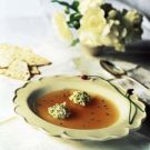 Add the matzo balls to the simmering stock and reheat for 3 minutes. Ladle the soup into warmed bowls, placing 2 matzo balls in each bowl. Garnish with the chives and serve immediately.