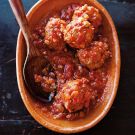 Using a trio of meats is perfect for these tender meatballs. Beef adds hearty flavor, while pork and veal provide a natural sweetness. For the perfect blend, use an equal amount of each. Unlike most recipes that call for browning the meatballs, this one braises them in an herbed tomato sauce. The meatballs and sauce can be prepared a day ahead and refrigerated, then reheated before serving.