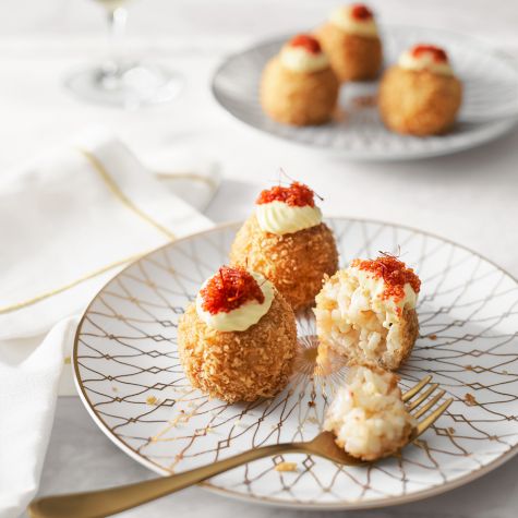 Shrimp Arancini with Lemon Aioli and Saffron Infused Caviar