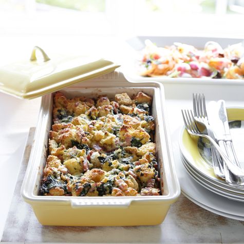 Easter Brunch MenuRing in the new season with our brunch menu that’s perfect for serving a crowd before the Easter egg hunt. The main course features a do-ahead strata—you can assemble it the night before and then bake it the next morning. Round out the offerings with a colorful shaved carrot salad and roasted asparagus, and raise a toast to spring.