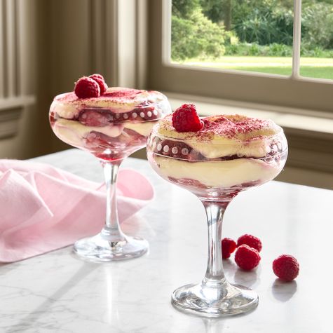 Although breakfast in bed is the meal most associated with Mother’s Day, why not celebrate Mom all day long, wrapping things up with an elegant dinner that takes advantage of seasonal fruits and vegetables? A bubbly spritz garnished with strawberry and basil makes a colorful start to the meal. For a showstopping main course, a succulent roast accompanies crusty baguettes and a tangy orzo side. Finish on a sweet note with a luscious tiramisu bursting with raspberry flavor.