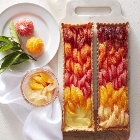 Close friends and a warming meal preceded by a strong cup of coffee or your favorite tea—what better way to ring in the New Year? Our festive brunch menu showcases citrus fruits, which are at their peak in January. You'll enjoy sparkling mimosas, a colorful citrus tart and a creamy tangerine curd that's perfect for spreading on freshly baked scones. For the main course, serve decadent eggnog French toast, which can be assembled a day in advance so you can sleep in after the New Year's festivities.