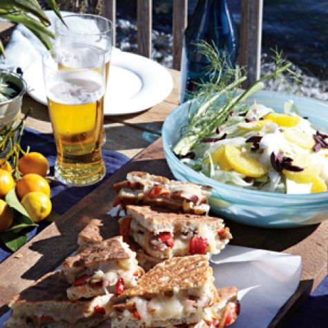 Panini Picnic MenuThe great thing about picnics is you don’t need a lot of food to have a good time. Our sausage and pepper panini tastes fantastic at room temperature, and the fennel and orange salad travels well while retaining the crisp crunch of the fennel. And no picnic is complete without something sweet; our almond tart will arrive at your destination in fine shape.