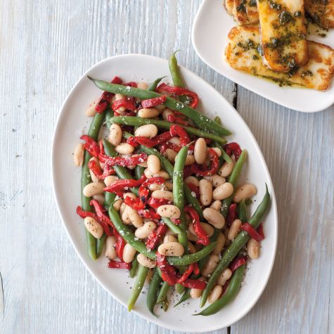 Summer Bean Salad with Fried Halloumi and Pesto