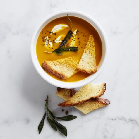 Butternut Squash Soup with Crème Fraîche and Fried Sage >