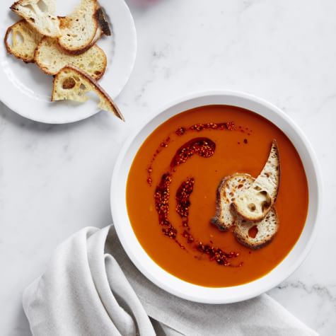 Carrot and Red Pepper Soup with Harissa >