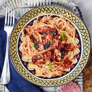 Add the pasta to the boiling water and cook until al dente (tender but firm to the bite), 8 to 10 minutes, or according to the package instructions. Drain the pasta well and add to the sauté pan with the sauce, stirring gently to coat the pasta. Divide among 4 warmed pasta bowls, garnish with basil leaves and serve immediately. Serves 4.