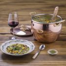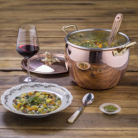 Minestrone is an Italian classic, used by mammas and nonnas nationwide to sneak healthy vegetables into the diets of picky children. It is also beloved by grown-ups as a warming and nourishing comfort food. Mamma Ruffoni discovered this version from Liguria when visiting in the summer. The soup is served slightly cooler during those hot summer months, and a swirl of basil pesto lends a delicious pop of flavor. Minestrone is also a wonderful way to minimize food waste by incorporating whatever vegetables and legumes you have on hand. Use the ingredient list here as a guide, then add or substitute as you like.