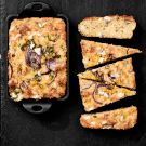 Filled and topped with tangy feta cheese and a medley of veggies, including fresh corn kernels, this cornbread makes a fantastic accompaniment to summer barbecues. Jalapeño chiles add a mild jolt of heat, while ground cumin lends warm, earthy notes. To ensure even baking, we use miniature cast-iron pans, which retain and distribute heat well. Enjoy this savory cornbread warm from the oven, slathered with salted butter.
