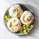 Individual desserts make a fun ending to a meal, and these sweet treats are sure to wow everyone at the table. Our miniature versions of pavlova, the baked meringue named for Russian ballerina Anna Pavlova, are filled with homemade lemon curd, then garnished with whipped cream and shaved pistachios. Sounds fancy, but they’re really quite easy to prepare and are perfect for spring.
