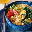When you’re craving a comforting bowl of ramen but are short on time, this recipe is for you. We teamed up with renowned chef and restaurateur Masaharu Morimoto to develop a vegan ramen broth concentrate—just combine it with soy milk and water, then bring to a simmer and pour the hot broth over cooked noodles. Garnish the soup with your favorite toppings, such as corn, tomatoes and kale, and in no time, you’ll be slurping up a steaming bowl of goodness!
