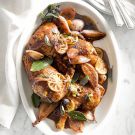 Change the setting to boil/steam and set the cook time to 10 minutes. Close the lid and boil until the sauce is reduced by half. Stir in the remaining 2 Tbs. butter, then turn off the cooker. Stir in the basil and adjust the seasoning with salt. Drizzle the sauce over the chicken and garnish with the lemon slices from the sauce. Serve immediately. Serves 4 to 6.