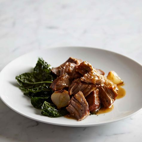 Return all the pork pieces to the multi-cooker insert. Add the braising sauce and change the multi-cooker’s setting to slow cook, high. Cover and cook until the meat is fork-tender, 4 to 5 hours. Season to taste with salt and pepper and serve immediately. Serves 4 to 6.