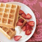 Serve the waffles with a dollop of yogurt on top, scattered with sliced strawberries. Makes 6 waffles; serves 4 to 6.