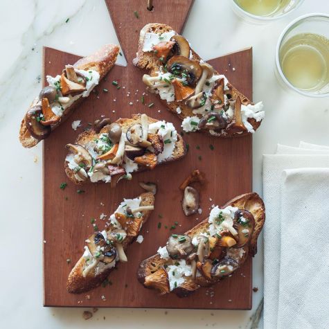 These topped toasts are awesome for parties: They make great finger food and look deceptively fancy. All it really takes is a few slices of toasted bread, a slathering of goat cheese and a topping of sautéed mushrooms—seriously easy and seriously impressive.