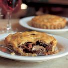 On a lightly floured surface, roll out two-thirds of the puff pastry into a 12-inch square about 1/8 inch thick. Using a 6-inch cardboard circle and a small, sharp knife, cut out 4 rounds. Ease each round into one of the prepared pans, patting it firmly into the bottom and up the sides and leaving an overhang of about 1/4 inch. Spoon the mushroom mixture into the pastry shells, dividing it evenly and heaping it slightly in the center.