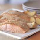 Arrange the fillets, breaded side up, in the pan, next to the potatoes. Bake until the fillets are barely opaque, the topping is golden brown and the potatoes are tender, 15 to 18 minutes. Arrange the salmon fillets alongside the potatoes on a platter, sprinkle with the parsley and serve immediately. Serves 4.