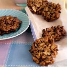 Drop heaping tablespoonfuls of the nut mixture onto the prepared baking sheets, spacing them about 2 inches apart. As you work, scrape down the sides of the bowl and stir the mixture occasionally. Flatten the mounds slightly.