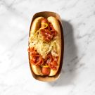New Yorkers might describe this inspired American classic as getting the “dirty water dog” treatment—which tastes way better than it sounds. Street cart vendors usually cook their hot dogs in a vat of seasoned water not unlike a broth. Combined with the onion sauce, the result is a mouthwatering hot dog with layers of flavors. If you have leftover onion sauce, allow it to cool completely to room temperature before storing in an airtight container in the refrigerator. Try it spooned over steaks or pork chops.