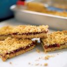 These delicious bars get most of their sweetness from the jam filling. The crumbly pastry, with its oatmeal and nut crunch, is reminiscent of a crumble topping. If you like your bars sweeter, add an additional 1/2 cup jam. Kids like to mix the crumbly dough and assemble the bars. After making them, they can bring them to school in their lunchbox—a healthy and yummy snack.