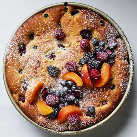 Rated 5 out of 5 by from Perfect Summer Cake This was my first time making this cake and using a kitchen scale to weigh ingredients. I think made a difference in how it turned out. I used strawberries and blueberries for the fruit and I didn’t have a circle pan on hand so I just used a square. It took less than 60 min to bake. Can’t wait to make this again for friends and family.