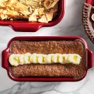Cut the loaf into slices and dollop each slice with the whipped mascarpone. (Alternatively, you can transfer the whipped mascarpone to a pastry bag and pipe it decoratively on top of each slice.) Spray the back of a small spoon with nonstick baking spray, create a divot in the whipped mascarpone, and fill it with olive oil. Garnish with more lemon zest and serve. Serves 8.