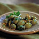 Nowadays, many shoppers are blessed with a wide variety of cured olives at their markets. Among the most commonly available are the black Kalamata from Greece; the mild, green picholine and the tiny, black Niçoise from France; the Gaeta from Italy; and the Manzanillo from Spain. Two tasty olives that, until relatively recently, were not often seen outside their places of origin are the large, mild, green Bella di Cerignola from Italy and the herb-seasoned black olive typically labeled Moroccan. Do not use ripe black pitted California olives for this recipe.