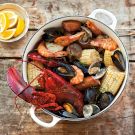 Leave the sand at the beach and serve this brimming pot for a fun, casual gathering. Diners can pick out hunks of corn, potatoes, sausages, a clam here and a lobster claw there. Just provide plenty of napkins, a bowl for the discards and a loaf of crusty bread.