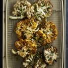 Using a spatula, carefully transfer the cauliflower slices to a platter. Drizzle with the gremolata. Squeeze the lemon halves over the cauliflower to taste and serve immediately. Serves 4 to 6.