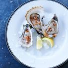 Fill a serving platter with crushed ice and arrange the oysters on top. Garnish with the chives. Serve with the mignonette, horseradish and lemon wedges alongside. Serves 6.