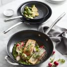After a long winter of eating hearty meals, we’re craving lighter fare and lots of fresh vegetables. This recipe fits the bill perfectly. Salmon is seared on the stovetop until the skin is nicely crisped and then finished with a medley of the season’s first offerings: artichokes, radishes and English peas. Serve with crusty bread for soaking up the sauce.