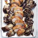 Delicate pork tenderloin is the extra-lean meat adjacent to the loin. This tasty, supple little muscle has a tendency to dry out quickly during cooking and can go from perfectly pink to dry and mealy the second you turn your back on the sauté pan. Our solution is to provide the tenderloin with a protective layer of much-needed fat in the form of rich, salty pancetta. As the tenderloin roasts, the pancetta crisps, basting the lean muscle with its fat so that it remains moist and infusing it with its robust flavor. Roasted radicchio is an excellent accompaniment.