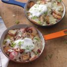 At Cafe Pasqual’s, a restaurant in Santa Fe, New Mexico, the menu of Southwestern fare includes favorites like huevos rancheros and papas fritas, crispy potatoes doused in a red or green chile sauce, covered in melted cheese and served with a flour or corn tortilla. At the restaurant, if you can’t decide between the two chile sauces, you can order your potatoes “Christmas-style” for some of each. Here, we’ve included the recipe for the red chile sauce for a simpler presentation. (You will have some sauce left over; save the rest for serving with chilaquiles or dolloping on top of tacos or tostadas.) If you can, fry the potatoes in clarified butter, which imparts a buttery flavor but won’t burn over higher heat levels like regular butter. Top each serving with some cooked Mexican chorizo sausage or a fried egg, if you like.
