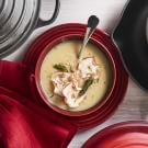 Our soup showcases apples two ways: a tart Granny Smith is pureed into the soup, and thin slices of sweet Gala are fried in an air fryer to make a crispy garnish. A mandoline will make fast work of thinly shaving the apple. Enjoy the soup as a first course for a dinner party, or pair with a loaf of crusty bread for a satisfying lunch on a cold winter day.