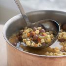 Here, beans and pasta are combined in a classic soup of southern Italy. Borlotti beans, which are ivory-beige with maroon speckles, are also known as cranberry beans. If you can find fresh borlotti shell beans, which are in season in late summer and early autumn, you can substitute 2 cups of them for the dried beans. Cook them in boiling water until tender, about 30 minutes.