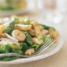 The ingredients that you add to a pasta salad can be as varied as the shapes of pasta that you use. Replace the crab, shrimp and asparagus in this recipe with shredded, poached chicken and thawed petite peas, or experiment with your own combinations of meat, poultry or seafood and vegetables.