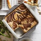 A buckle is an old-fashioned dessert that combines the best of both worlds, with cake on the bottom and fresh fruit on top. It takes on a buckled appearance as it bakes, hence the name. Our version, featuring pears and a cake batter that’s lightly spiced with cinnamon, will be a hit at autumn gatherings. The dessert comes together easily and tastes even better served with a dollop of whipped cream or a scoop of vanilla ice cream.