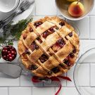 A mixture of pears and bright red cranberries make a colorful filling for this winter pie, a perfect choice for holiday celebrations. Making a lattice crust with strips of different widths gives it a fun modern look.