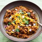 Ladle the chili into warmed bowls and serve immediately with cheese, cilantro, red onion and sour cream. Serves 6 to 8.