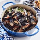 - 2 lb. (1 kg) PEI mussels, scrubbed and debearded