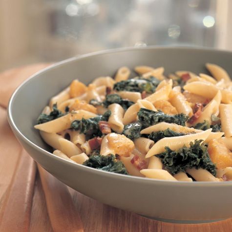 Add the squash and kale and sauté until the kale begins to wilt, about 1 minute. Add the broth, cover and cook until the squash is just tender, about 15 minutes. Uncover, increase the heat to high and bring to a boil. Cook until the broth is reduced by half, about 5 minutes more. Reduce the heat to low and stir in the cream and sage. Season with salt and pepper. To freeze the sauce, set aside to cool (see note).