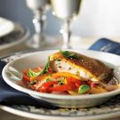 Divide the peperonata among 4 individual bowls and top each with 1 fish fillet, breaded side up. Garnish with parsley and serve immediately. Serves 4.